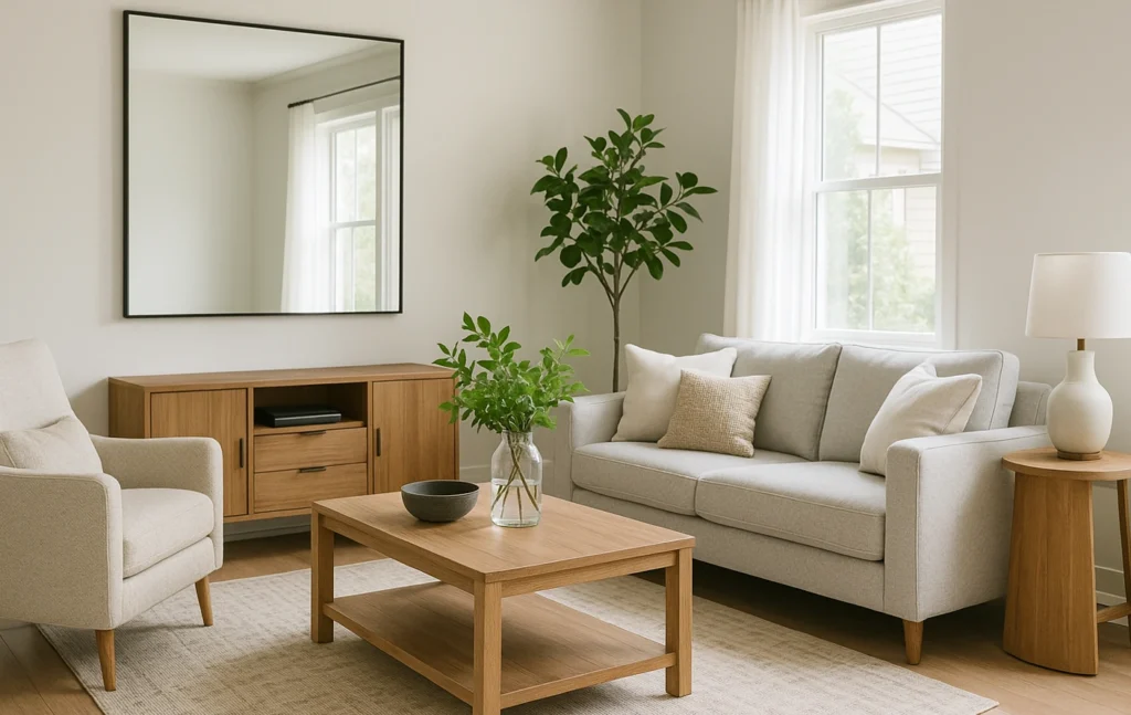 Mirrors are one of the simplest yet most effective tools for expanding visual space. A well-positioned mirror reflects natural light, amplifies your view, and gives the illusion of depth. Placing a large mirror opposite a window instantly brightens the room and makes it feel twice as spacious. A gallery wall of smaller mirrors can also add artistry while serving the same visual purpose.